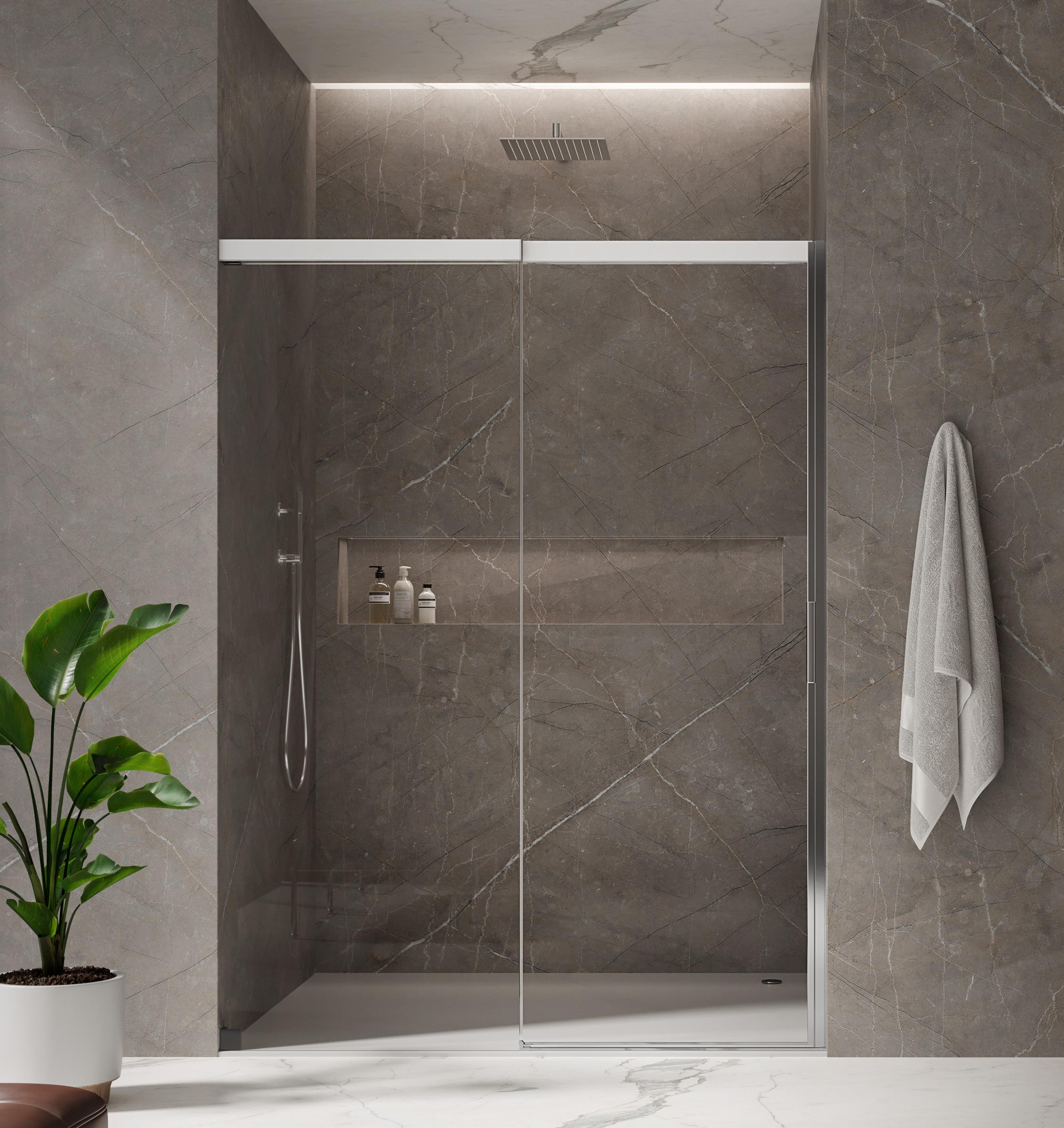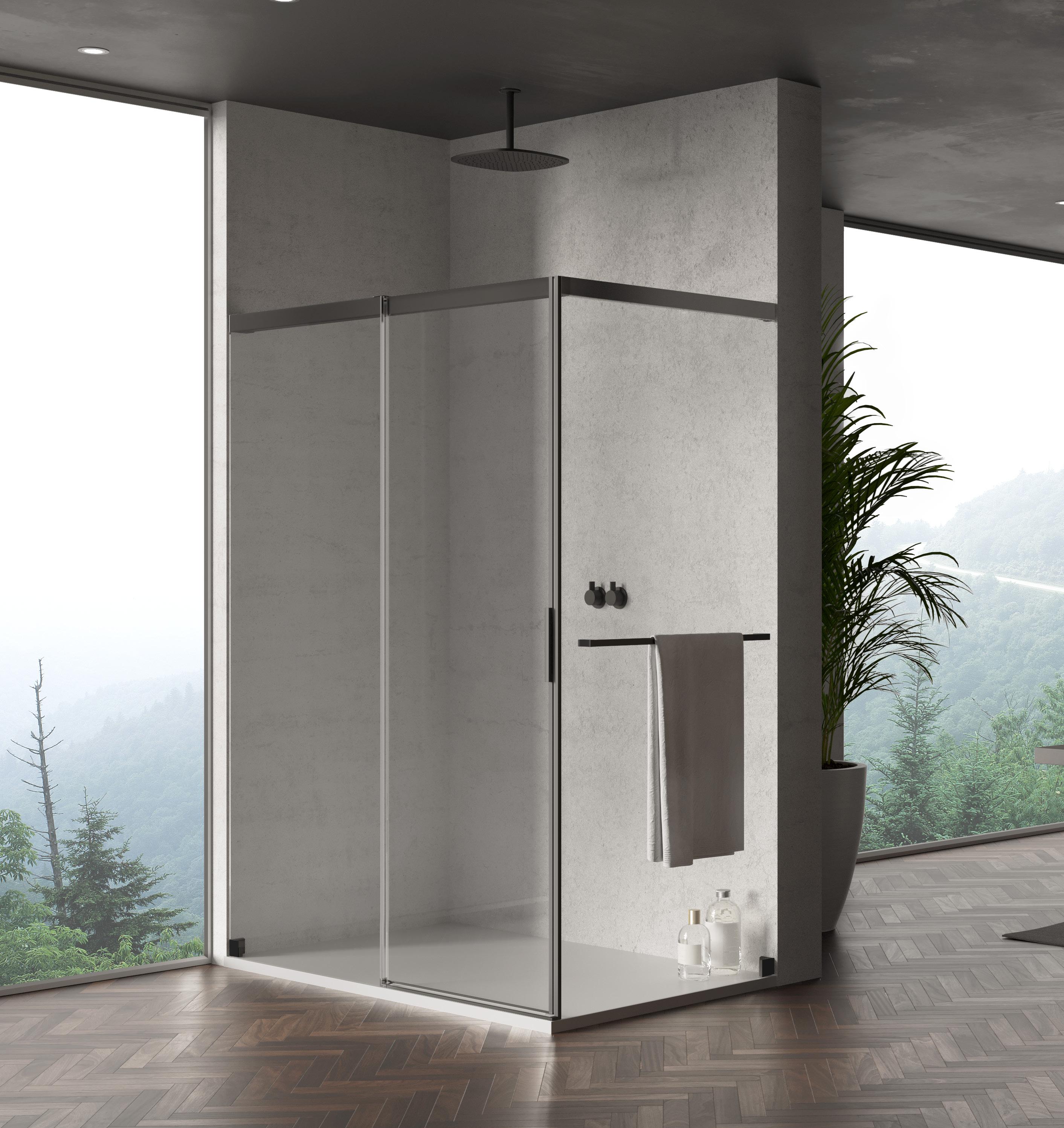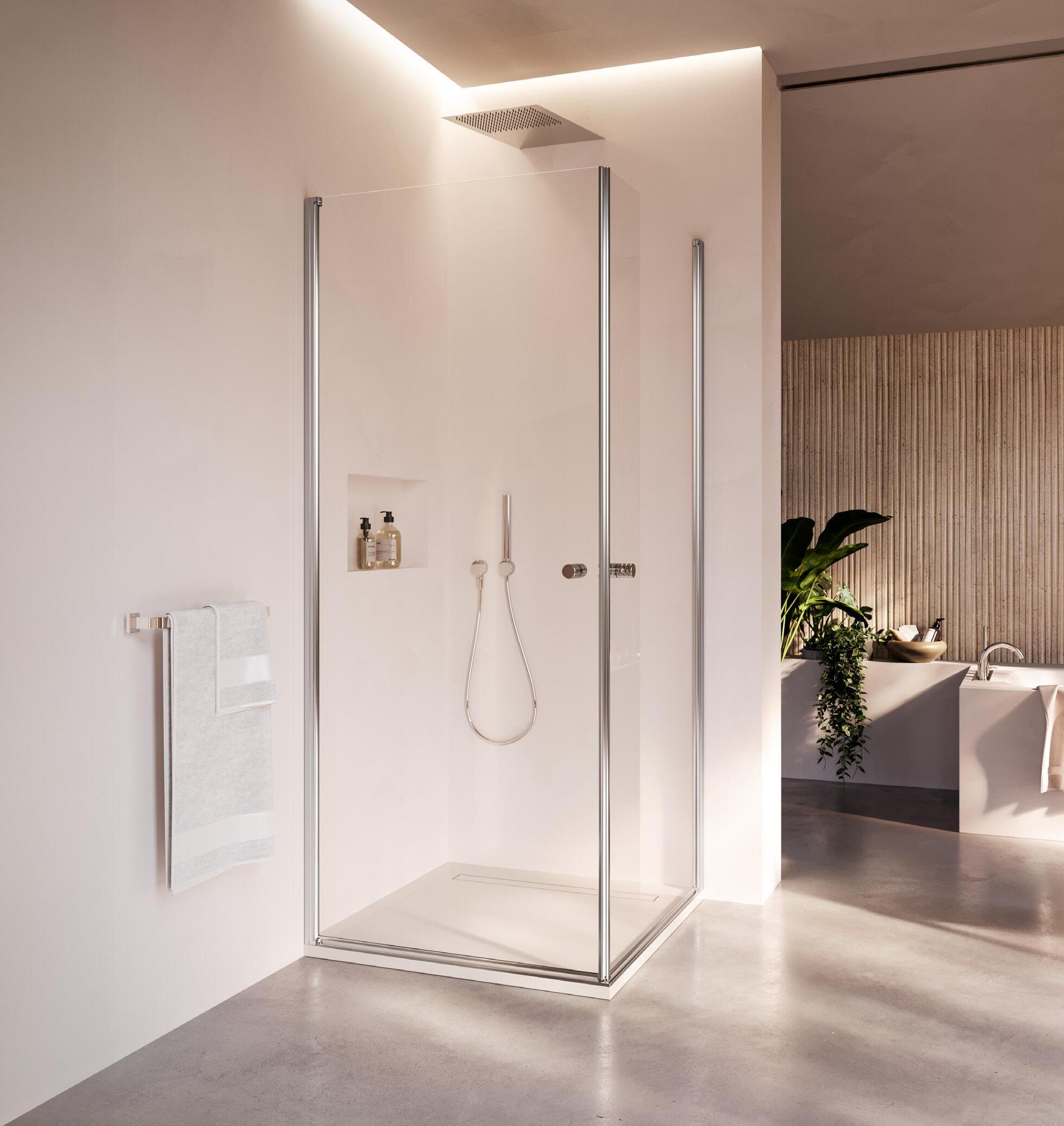 8 mm Spessore del vetro | 2000 mm Altezza standard Con acqua 5000, Duka raggiunge l’obiettivo di realizzare una porta scorrevole senza telaio. La brillantezza dell’alluminio incontra la leggerezza delle trasparenze del vetro. Forme appassionate e un outfit moderno evocano un’atmosfera unica nel vostro bagno. Sia in versione ad angolo, sia in nicchia, acqua 5000 è disponibile in quasi tutte le dimensioni.