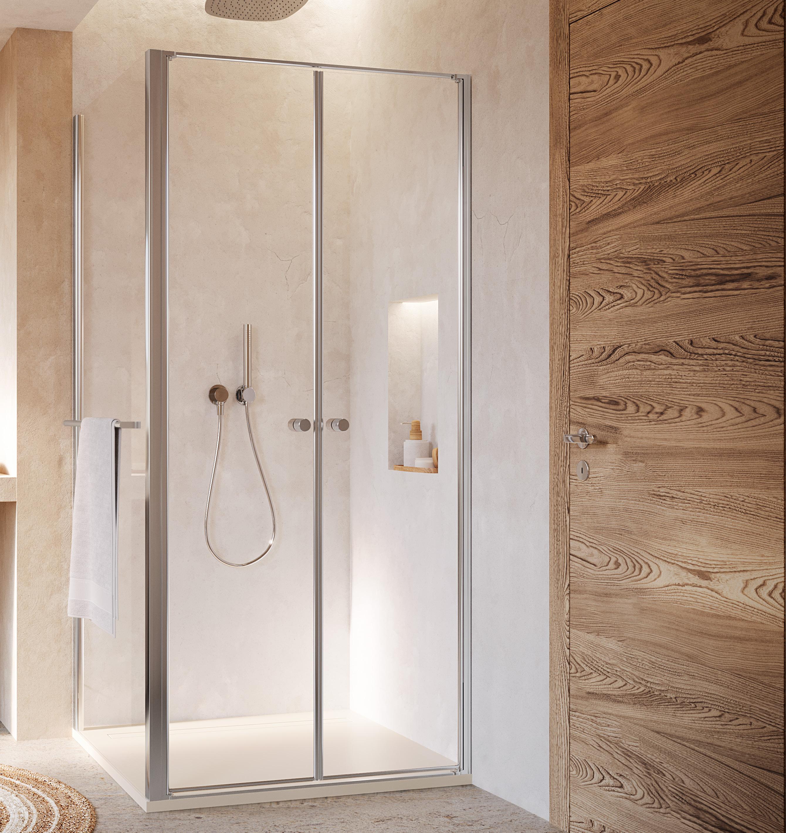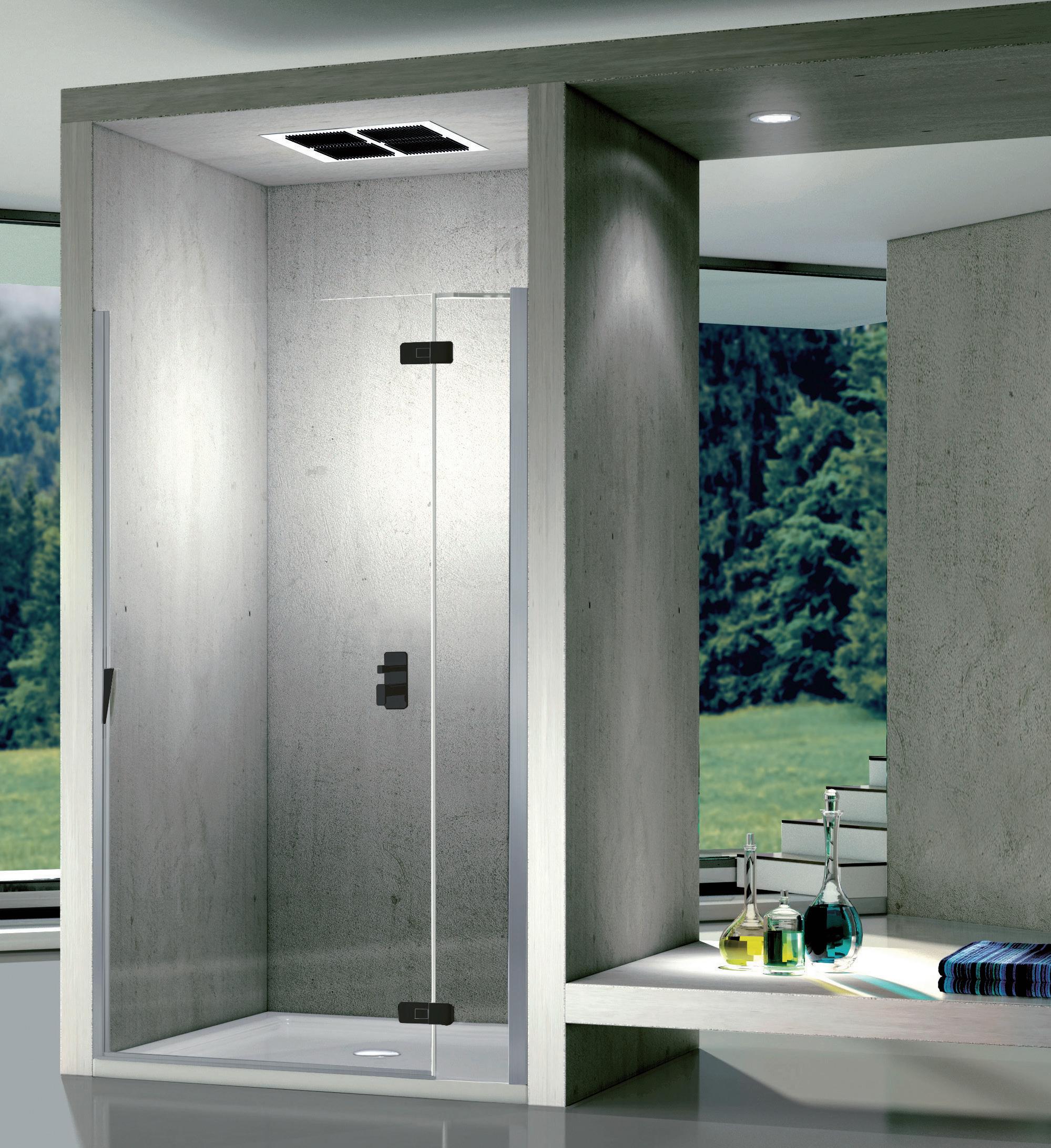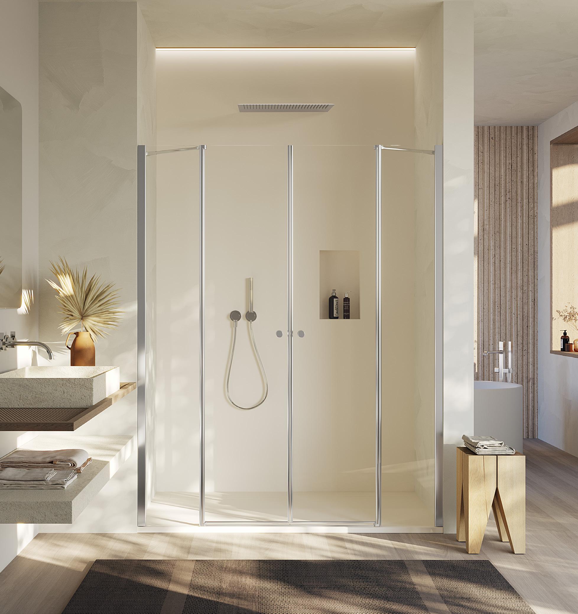 Porta battente 180° a due elementi con 2 elementi fissi per nicchia - Versione senza profili