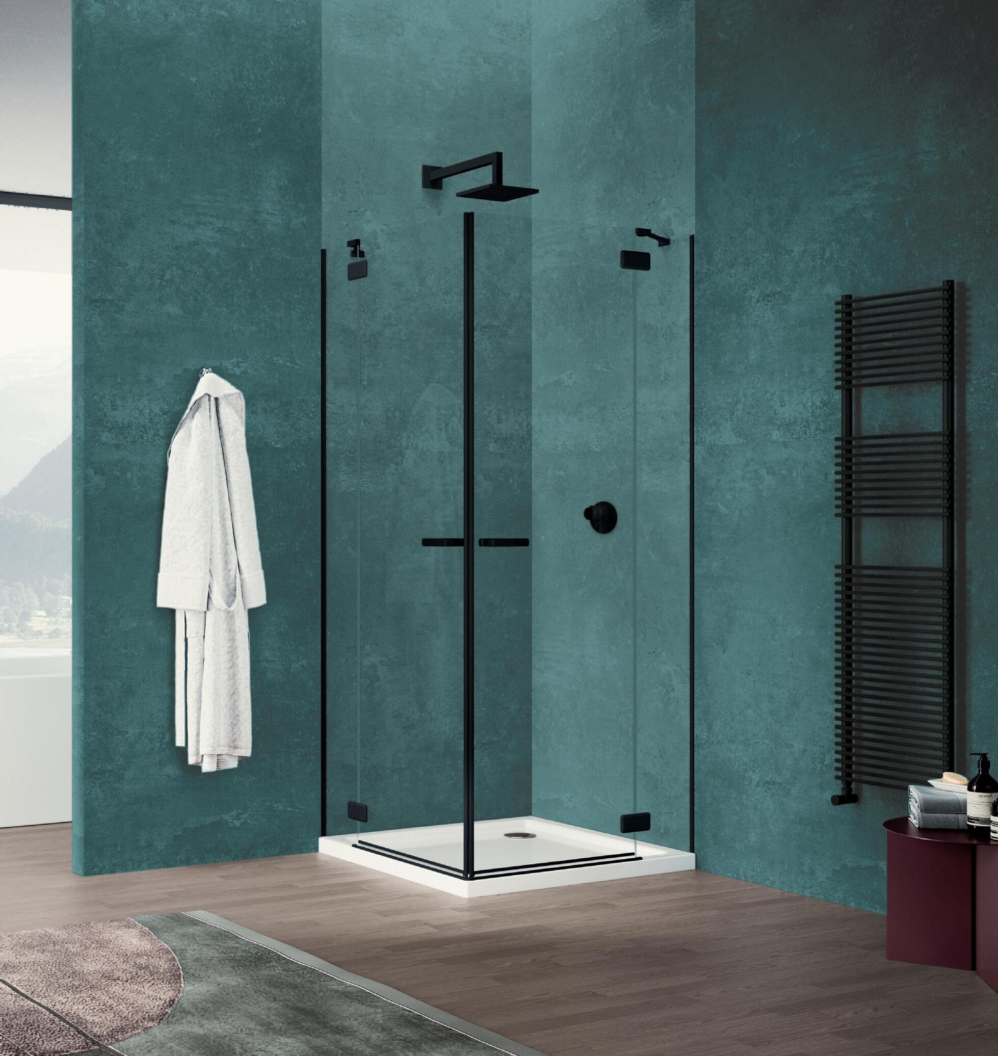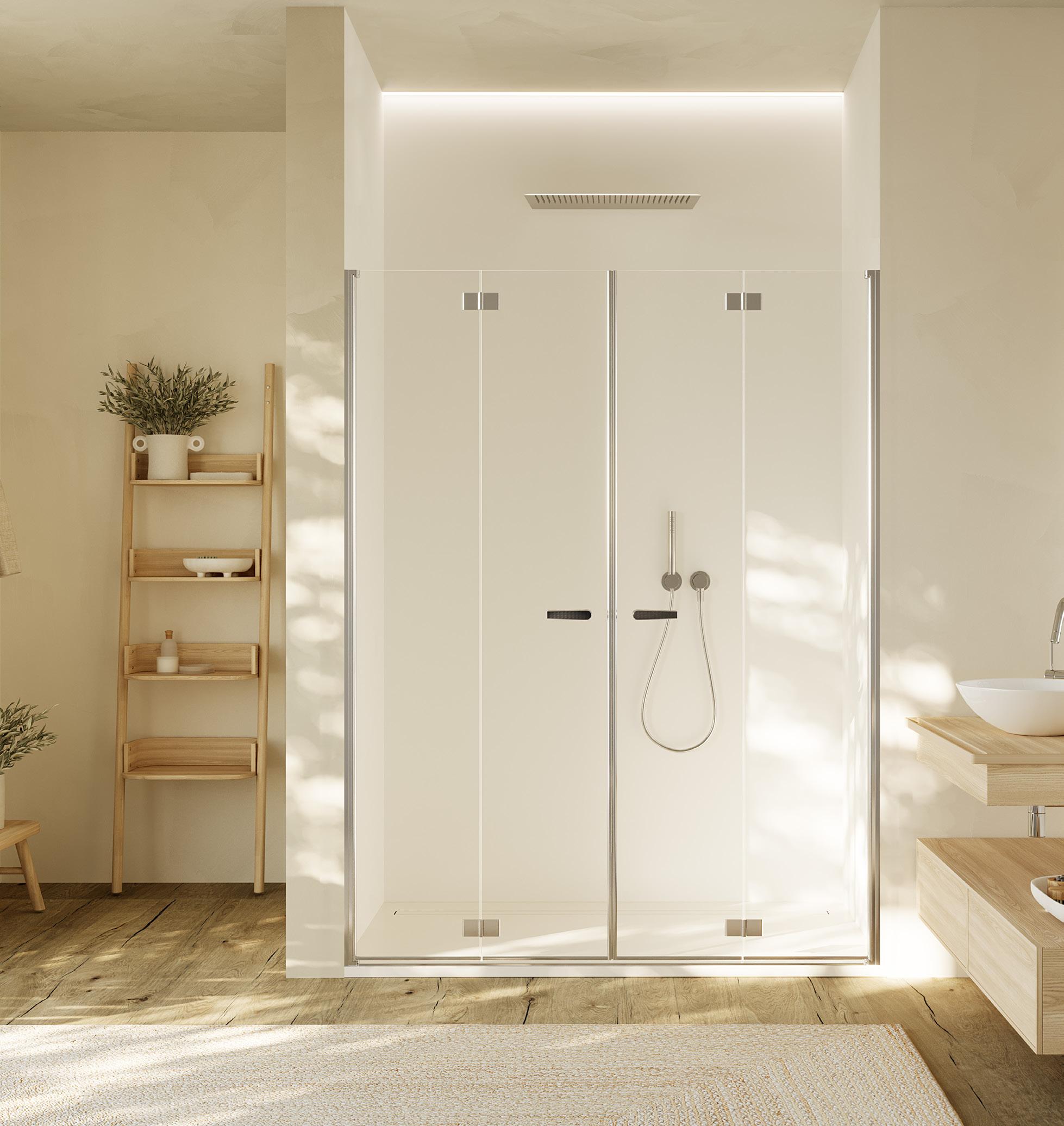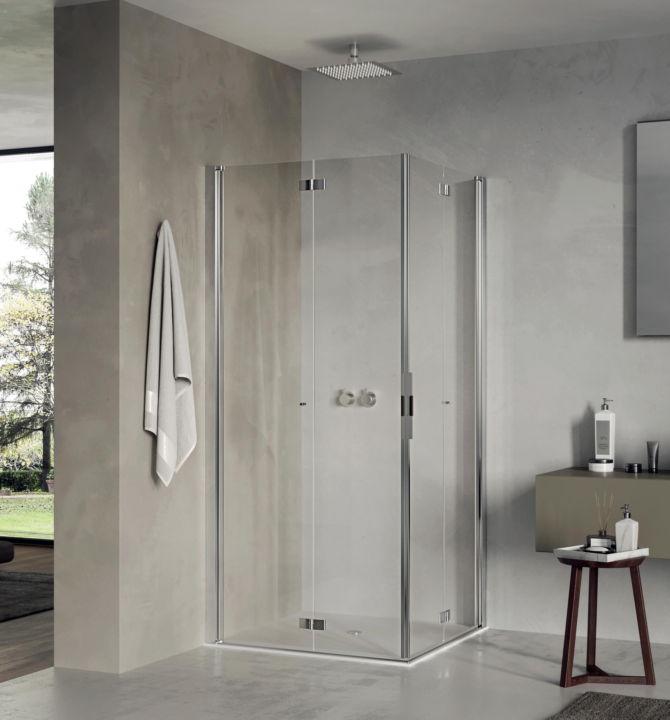 Porta battente 180° a due elementi con 2 elementi fissi per nicchia - Versione senza profili