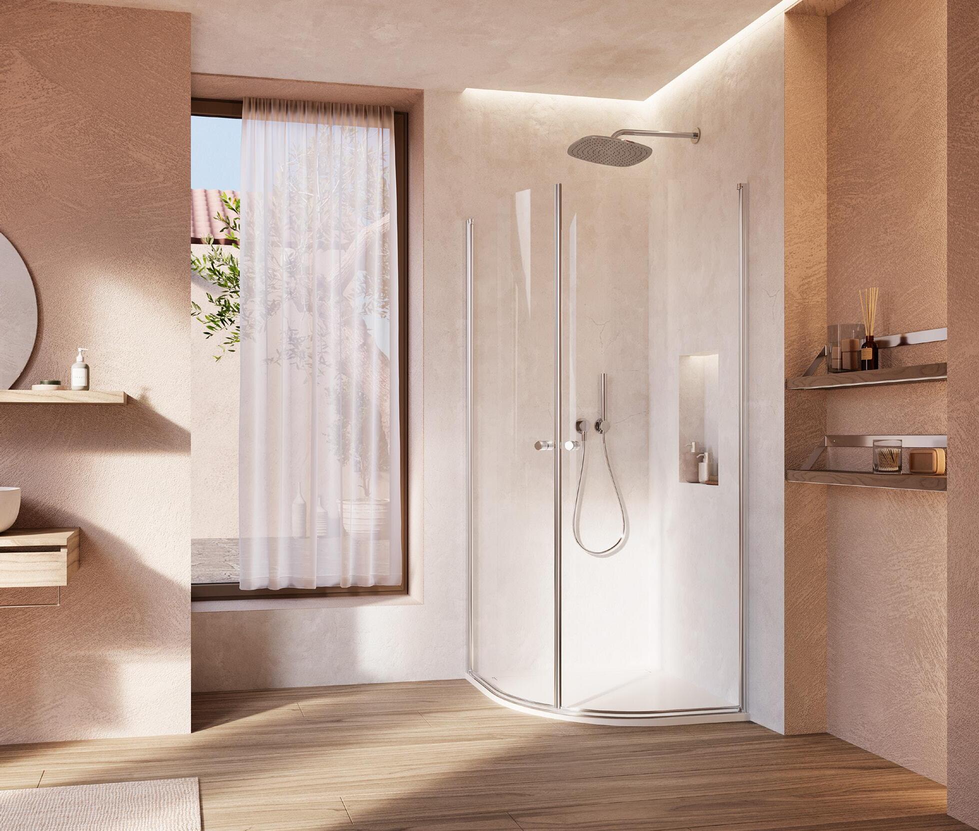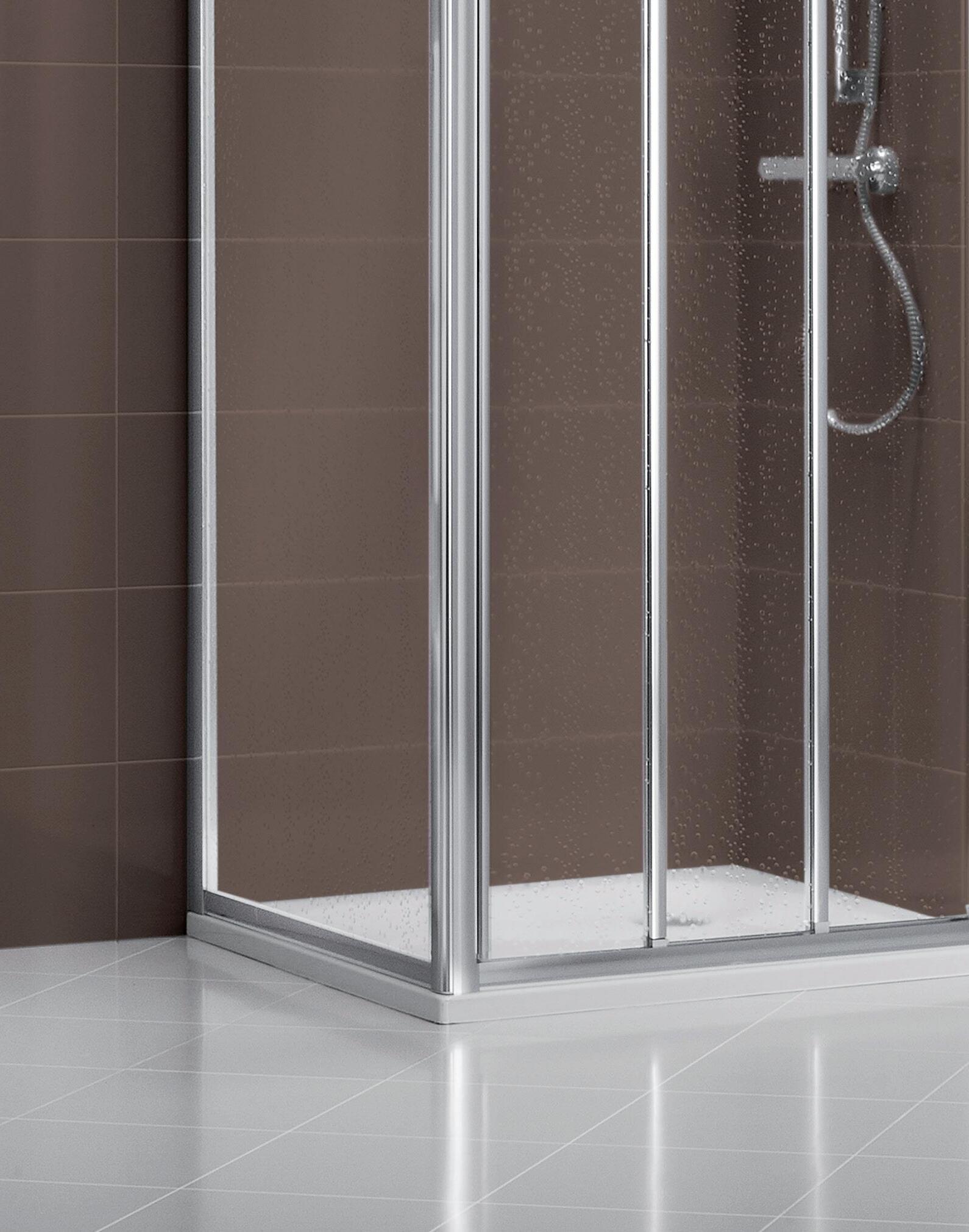 ProCare: Ogni cabina doccia è disponibile su richiesta con la protezione superficiale del vetro temperato Protect. L’acqua si accumula sulla superficie in forma di gocce. In questo modo l’acqua scivola via più facilmente e si riduce la formazione di depositi. Questo garantisce una facile pulizia. Importante: non utilizzare detergenti abrasivi, corrosivi, acidi o alcalini.