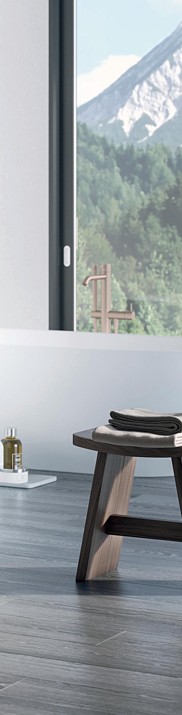 Sul margine inferiore del vetro viene applicato un profilo in alluminio estremamente discreto, combinato a una guarnizione in PVC inseribile lateralmente, quasi invisibile e altamente efficace. L’aggetto idrorepellente interno e le labbra morbide in basso non lasciano scampo all’acqua: la rimozione della guarnizione, semplice e rapida, ne agevola la pulizia o la sostituzione.