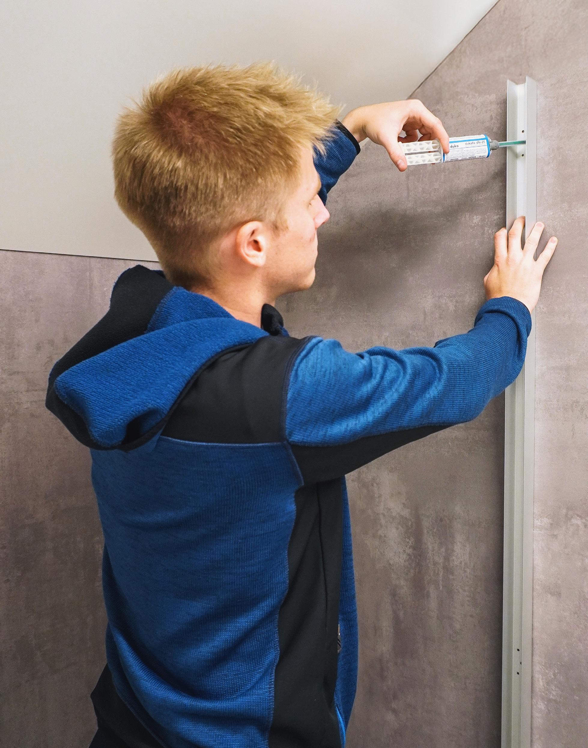 Duka presenta dukafix pro, la tecnologia di installazione dei profili a parete con adesivo bicomponente. Il “sistema invisibile“ è stato sviluppato per rispettare il design essenziale, la leggerezza delle forme e l‘alta funzionalità e, soprattutto, per rendere l‘installazione ancora più semplice. Ciò che caratterizza le cabine doccia Duka è la facilità di installazione, che ora è ancora migliore con dukafix pro. Disponibile per: multi-S 4000, libero 4000 e natura 4000.