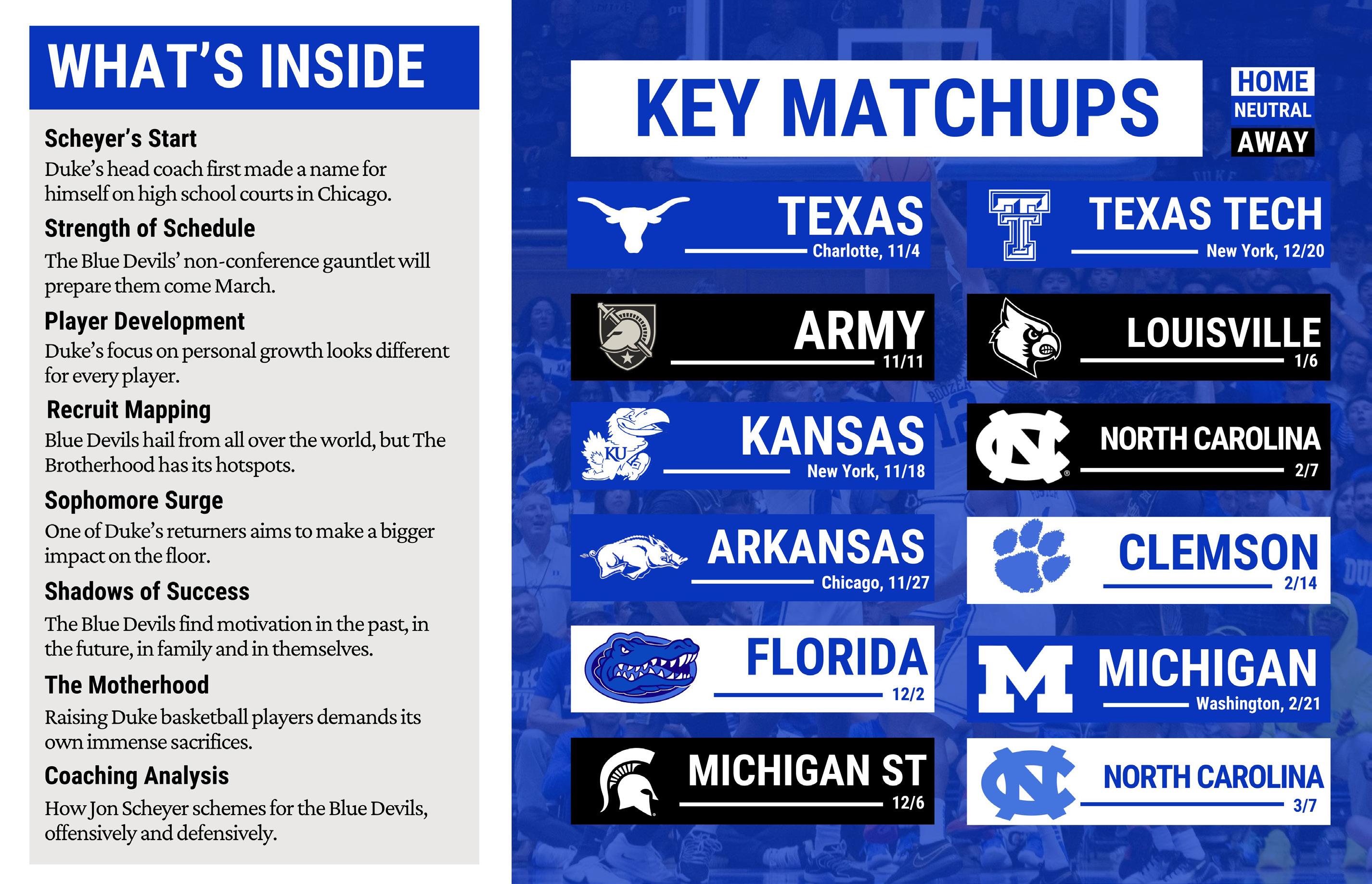 And the coach’s playstyle isn't the only relic of his high school years that lives on with Duke basketball. His unwavering competitiveness can be seen in how he schedules his games. The Blue Devils are set to play seven non-conference teams in the AP top-25 preseason poll this season.