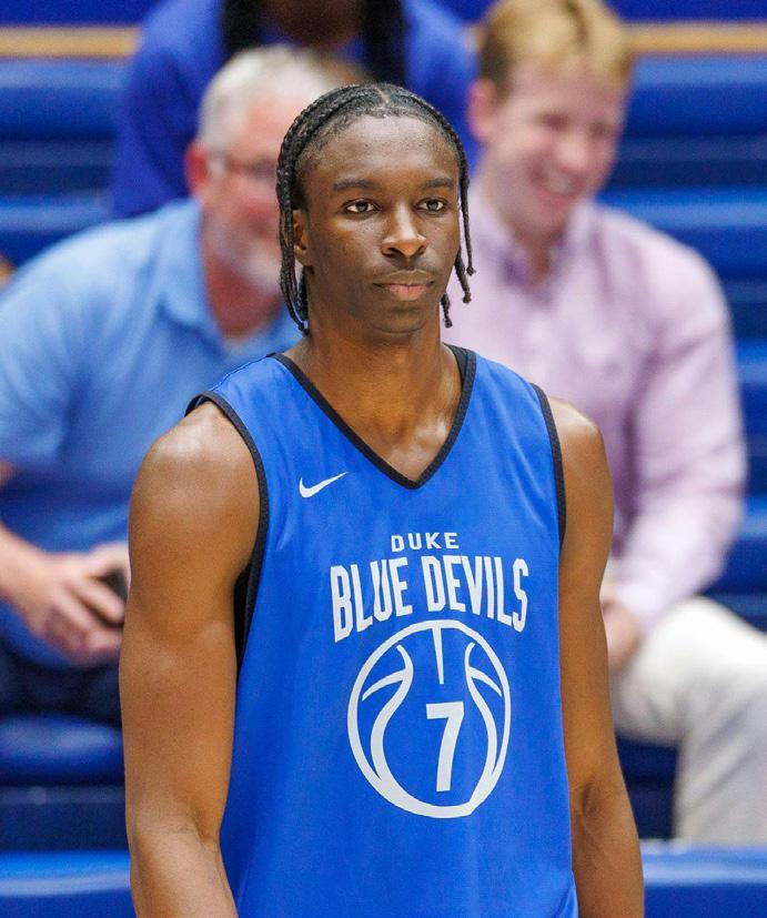 This summer, all of Scheyer’s returners had their own personal development blueprints. Sophomore Darren Harris cut out fried foods and sweets to improve his physical fitness. Patrick Ngongba II also partook in the fitness journey by losing 16 pounds. Sharpshooter Isaiah Evans, now circled on scouting reports as a threat from deep, has worked on his physicality on the defensive end to match up with the toughest guards in the country, part of his 98%. And Maliq Brown and Caleb Foster, Duke’s two representatives at ACC Tipoff in Charlotte, have developed their vocal leadership to mentor the emerging freshmen.