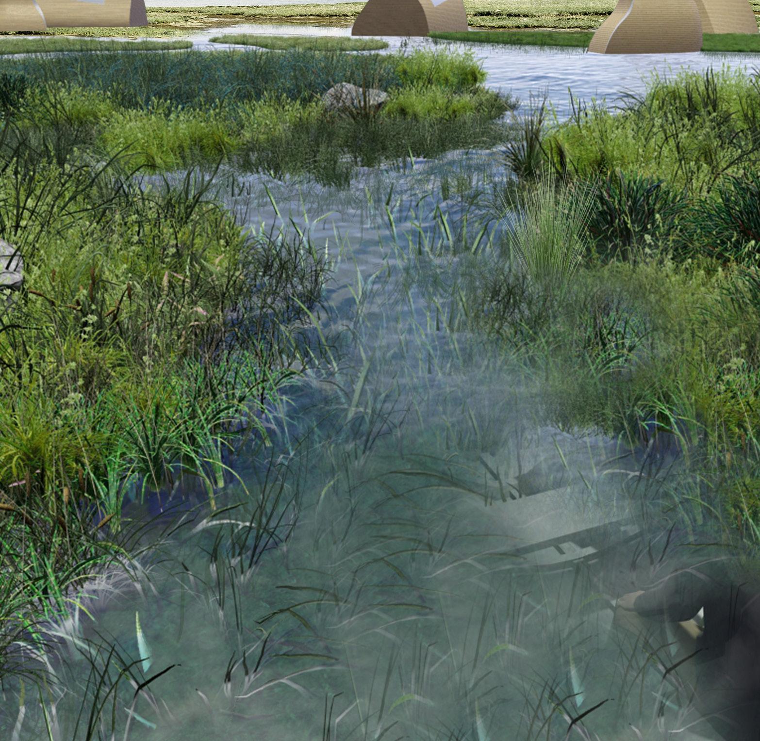 In Mar’pool’ 2200, the temperature has warmed a few degrees, the mean sea level has raised a meter or more, and flood seasons are exacerbated in frequency, duration, intensity, and height. This has given rise to a new coastal ecology that is sponge like, perpetually saturated, often brackish, and more tropical than we experience presently.