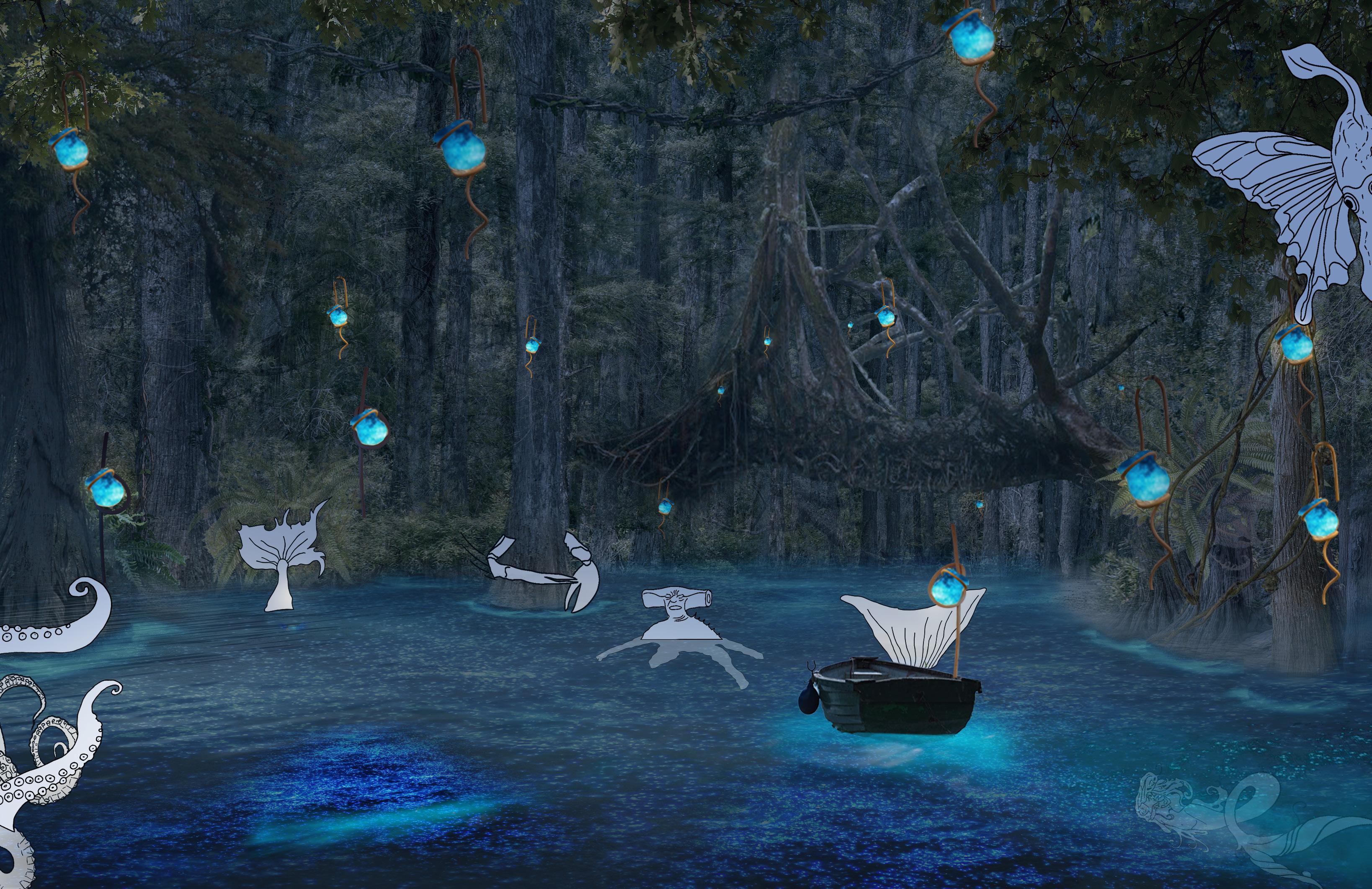 Perhaps Sarai always felt her place was underwater, but this journey brought the clarity she needed. Tonight she is sure. Finally, the river swelled with ocean water, the forest came alive, and in the night she adapted. No longer questioning her place here, she too has sown her roots deeper than the river flows.