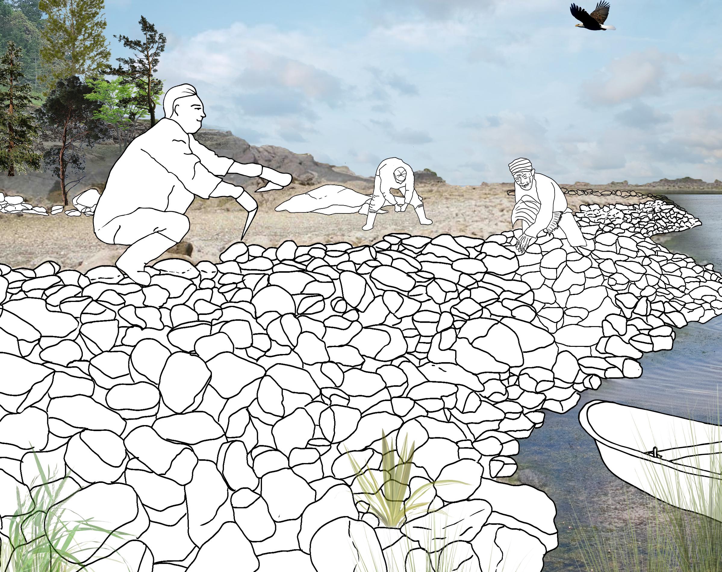 This amphibious future is a coalescence of the authors shared interests in Traditional Ecological Knowledges, climate justice, climate adaptation, and coastal ecologies. It seeks to fuse and envision how traditional methods and knowledges of land management might steer us toward a just future.