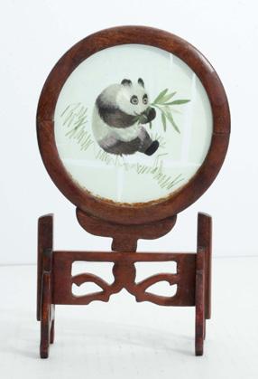 Chinese Silk Embroidery Miniature Panda Screen, H