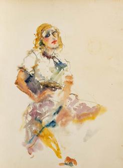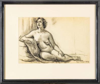 Signed Cole, Ink Sketch, 1944, H 12” W 7” Two Figures $100 - $200