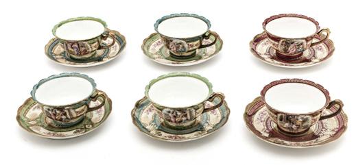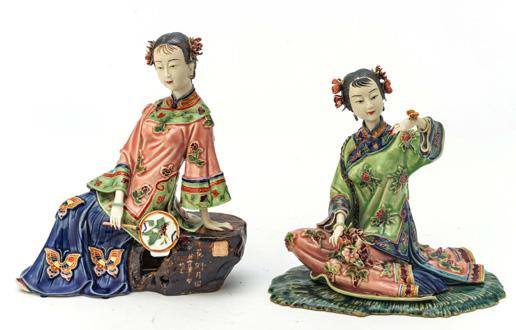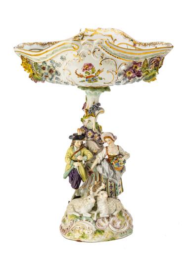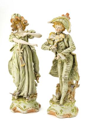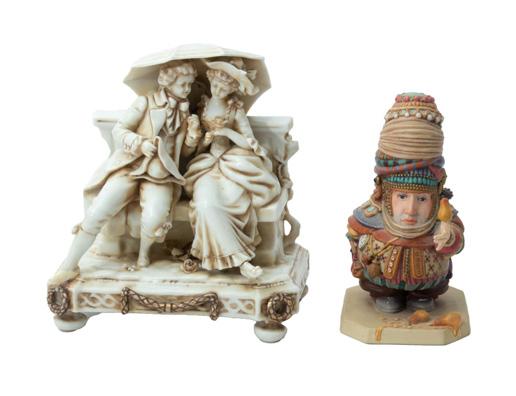 Christensen, Porcelain, Man In Elaborate Dress And Turban Holding A Pear, H 6”, 7” Also Figures On Bench $50 - $75