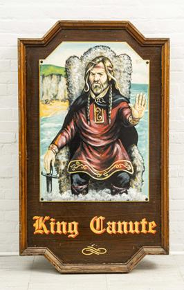 Wood “King Canute” Pub Sign, 20Th C., H 60”, W 36”, D 4.5” $200 - $400