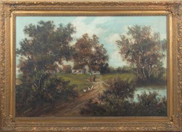 Dutch School Oil Painting On Canvas, H 24 W 32 Reverse Signed. $200 - $300