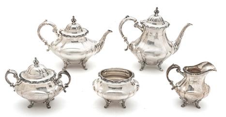 388 | $200-$400 Waterford (Irish, 1783) Crystal Napkin Rings, W 2’’ Dia. 2’’ 12 pcs 389 | $250-$350 W & S Sorensen (Danish) Sterling Silver Serving Forks (2) Spoon, Ladle, Spoon L 9’’ 5t oz 4 pcs 390 | $300-$400 W & S Sorensen, Denmark Sterling Silver Serv ing Spoon, Fork, Flat Server 9.3t oz 3 pcs 391 | $200-$400 Wilcox Silver Plate Compote, Bird On Branch At Base C. 1880, H 7’’ W 7’’ 392 | $100-$150 Reed And Barton Sterling Silver Muffineer H 7.2’’ 4.5t oz 393 | $200-$300 London Sterling Silver Sauce Boat, C. 1731 And Ladle 1792, H 2’’ L 5.7’’ 6.5t oz 394 | $200-$400 Brazil Sterling Silver Hand Made Centerpiece Bowl Dia. 10’’ 16.1t oz 395 | $500-$800 Georgian Sterling Silver Kettle On Warming Stand, C. 1765, H 12’’ W 7’’ 39.7t oz 396 | $400-$800 London Sterling Silver After Dinner Coffee Pot C. 18th C., H 6.5’’ 10.7t oz 397 | $100-$200 Hand Made Sterling Silver Open Footed Bowl C. 1880, H 2.5’’ Dia. 5’’ 5.17t oz 398 | $200-$300 Georgian Sterling Silver Pap Boat, Maker IM. C. 1810, W 3’’ L 5’’ 1.9t oz 399 | $200-$400 “WF” Or “WB” London Sterling Silver Baskets C. 1821, H 4.5’’ W 3’’ 6.94t oz 2 pcs 400 | $200-$300 Birmingham, Sterling Silver Open Salts C. 1903, Maker J.G, H 1.5’’ W 2.5’’ 3.7t oz 4 pcs