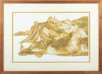 Luis Piza (Brazil, 1928-2017) Etching On BFK Wove Paper, 1967, Galaxie I, H 16’’ W 13.5’’ , SN: 88/95, 1145 | $300-$500 Larry Zox (American, 1936-2006) Serigraph In Colors On Wove Paper, Untitled (Geometric Abstract), H 15’’ W 18’’ 1146 | $200-$400 Larry Zox (American, 1936-2006) Serigraph In Colors On Wove Paper, Untitled Abstract, H 17.75’’ W 17.75’’ 1147 | $300-$500 Yakahashi C. 1962, “Zen Temple”, H 37’’ W 24’’ 1148 | $300-$500 Renzo Vesvignani Lithograph, C. 1957, “Building”, H 17’’ W 20.75’’ 1149 | $300-$500 Gawaine Dart (Michigan, 1929-2014) Watercolor And Ink On Paper, H 20’’ W 27.5’’ 1150 | $300-$500 Peterdi (Gabor) Etching & Engraving, C. 1957, “Sleeping Forest”, 1151 | $300-$500 Nicholas Krushenick (American, 1929-1999) Screenprint In Colors On Paper, 1967, Waves, H 25.25’’ W 19’’ #49/80 1152 | $400-$600 B. Jacobson Print On Paper 1959, “Mt. River”, H 14.5’’ W 30’’ #2/11 1153 | $300-$500 Rudolf Kugler (German, 1921-2013) Etching In Colors, On Wove Paper, 1964, Moorish City, H 15.75’’ W 19.5’’ 1154 | $100-$200 Thomas Kruger (German 1918-1984, 1918-1984) Lithograph On Paper, “North Light/Morning Light”, H 14.75’’ W 19’’ 1155 | $500-$900 Grecian Carved Marble Partial Statue, C. B.C.E., Feline Panther, H 21’’ W 13’’ Depth 18’’ 2 pcs 1156 | $400-$800 Grecian Carved Marble Partial Statue, C. B.C.E., Head Of Dionysus, H 11’’ W 10’’ Depth 8’’ 1157 | $2000-$3000 After James Earle Fraser (American, 1876-1953) Bronze Sculpture, H 31”, L 27”, End Of The Trail 1158 | $600-$1000 After Frederic Remington (American, 1861-1909) Bronze Sculpture, Cheyenne, H 22’’ L 21’’ 1159 | $1000-$2000 After Duchoiselle (French 19Th C.) Bronze Sculp ture, H 10”, L 15”, Indian Maiden In A Canoe