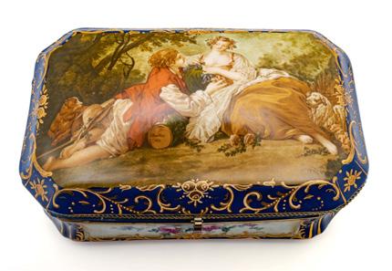 Thursday Auction November 17th, 2022 (313) 963-6255 dumoart.com Page 23 441 | $100-$150 Iron Base Swivel Stool C. 1900, H 21’’ Dia. 13’’ 442 | $100-$150 Iron Small Console Table, Granite Top C. 1930, H 31’’ W 13’’ Depth 8’’ 443 | $200-$300 Wrought Iron Floor Planter C. 1910, H 43’’ W 18’’ + Another 444 | $200-$400 Repogle Globe Of World, Mahogany Base H 36’’ Dia. 16’’ 445 | $200-$400 Electrified Globe With Mahogany Stand H 39’’ Dia. 16’’ 446 | $100-$300 Wicker Elephant Form Tray Top Table C. 1950, H 21’’ W 15’’ L 23’’ 447 | $200-$400 Glazed Terracotta Elephant Form Garden Seats, H 20.5’’ L 19’’ 1 Pair 448 | $400-$500 Copeland Spode Porcelain Service Plates, Retailed By Tiffany Dia. 10.5’’ 11 pcs 449 | $400-$500 Royal Doulton (British, 1815) Dinner Set “Wood land” 86 pcs 450 | $100-$150 Coalport “Indian Tree” Porcelain Dessert Plates C. 1930, Dia. 9’’ 12 pcs 451 | $100-$200 French Quimper Faience Ware, Hand Painted C. 1960, 20 pcs 452 | $100-$200 Herend (Hungary) Porcelain Ink Stand, Pitcher, Covered Dish 3 pcs 453 | $200-$400 Sevres (French) Porcelain Box. C. 19th.c., H 2’’ W 5’’ Depth 3’’ 454 | $100-$200 German Painting On Porcelain, On Jewelry Box W 2.2’’ L 2.7’’ 455 | $100-$200 Royal Copenhagen Porcelain Figure Little Girl On Rock H 5.6’’ 456 | $100-$150 Lenox Silver On Porcelain Vase C. 1920, Also French Cameo In Frame, H 4’’ 2 pcs 457 | $100-$300 Sterling And Enamel Compacts (2) @ 2”, Halcy on Days, Limoges, Etc Small Boxes 13 pcs 458 | $100-$150 Wedgwood “England” Biscuit Barrel, Jasperware Cobalt Blue, C. 19th.c., H 8’’ Dia. 5’’ 459 | $200-$300 German Carved Wood Snuff Boxes (5) + Horn Box C. 1850, Equestrian Scenes 460 | $100-$200 English Burled Wood Tea Caddy, C. 1840, H 6.5’’ L 9’’ Depth 5’’