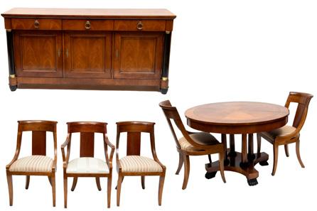 1051 | $800-$1,200.00 Thomasville (American) Grand Classics, Biedermeier Style Maple Bedroom Set 4 Pcs H 34’’ L 76’’ Depth 20.25’’ 1052 | $600-$1,000.00 John Widdicomb (American) Burled Elm And Maple Black Leather Top Library Table H 29.25’’ W 64’’ Depth 32’’ 1053 | $400-$800 Niels Otto Moller (Danish) Teak Model 85 Side Chairs C. 1981, 1054 | $400-$600 Piotr Sierakowski For Koch & Lowy Tripod Design In Memphis Style, Footsteps Torchieres (Floor Lamps) C. 1980, Pair H 73’’ W 18’’ Dia. 18’’ 1055 | $200-$400 Arteluce (Co.) (Italian) Memphis Style Lamp H 32’’ Dia. 9.5’’ 1056 | $600-$800 Magis Chrome Stools, Swivel, Adjustable 195060 H 32’’ Dia. 15’’ 3 pcs 1057 | $200-$400 House Of Ran Su (American) Mid-Century Modern Wood And Metal Wall Sculpture, Style No. 290: Rambling Vine, H 24’’ W 54’’ 1058 | $500-$800 Maxwell Davis, Glass Top Demi Lune Wall Mounted Console Table, Signed H 32’’ W 18’’ L 60’’ 1059 | $400-$600 Style Of George Nelson (American, 1908-1986) Coconut Lounge Chair, Tan Leather, H 35’’ W 40’’