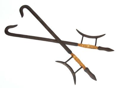 African Carved Wood Utensils Ca. Mid 20th C., W 9” L 27” 3 pcs