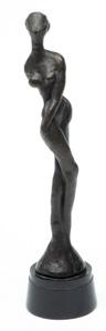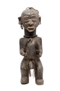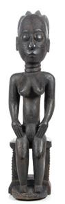 Baule, (Cote D’Ivoire) Carved Wood Sculpture, Seated Semi-Nude Female, H 27” W 6.5” Depth 8”