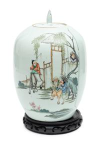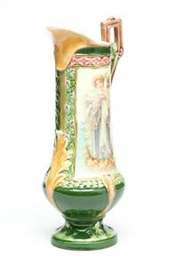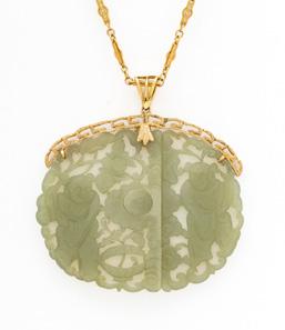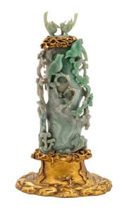 Chinese Green Jade Urn, Edward Farmer Mount, From The Estate Of Fred Fisher, H 17” W 6.25” L 9”