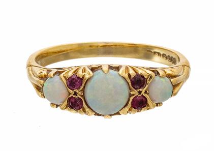 Opal With Diamonds & Yellow Gold Ring, 5g Size: 5.75
