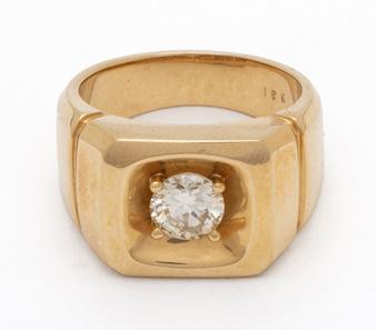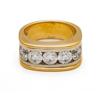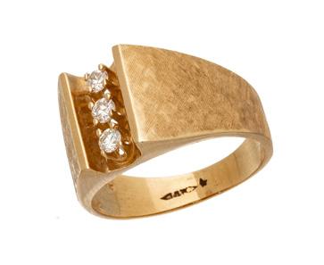 Men’s Ring, 5 Brilliant Cut Diamonds & 14kt Yellow Gold, 22g Size: 11.5
