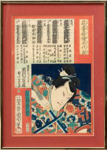 1502 | $300-$400 Kunichika, Kakitsu Ichikawa,Japanese, Woodcut Ca. 1865, Kabuki Actor, H 8.5” L 13”