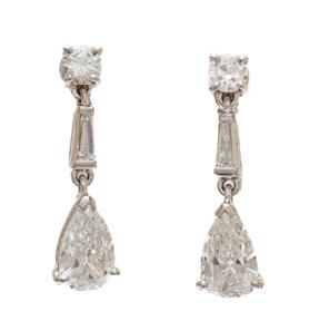 1.2ct Diamond Pear Shape & 14kt White Gold Earrings, H 1” W 0.25” 6g