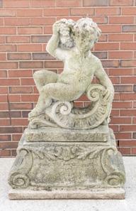 Carved Marble Garden Bench, H 20” W 42” Depth 16”