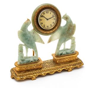 Edward Farmer, Green Jade And Gilt Silver, Jaeger Watch Co. Clock, Ca. 1900, H 8.5” L 9.25” Depth 3”