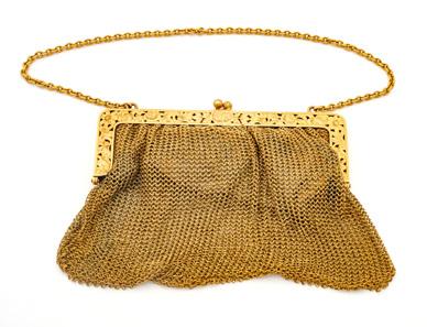 14K Gold Vintage Mesh Chainmail Flapper Evening Bag Ca. 1900, H 4” W 5” 154g