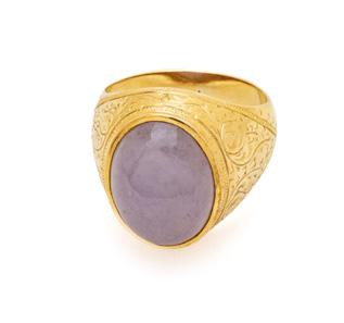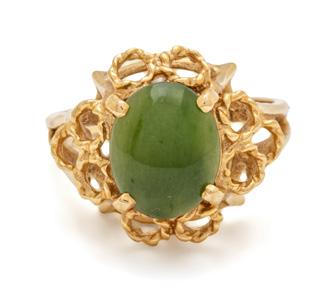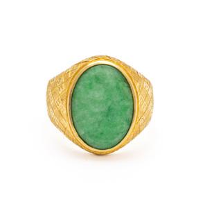 Men’s 14kt Yellow Gold And Green Burmese Jade Ring, 12g Size: 10
