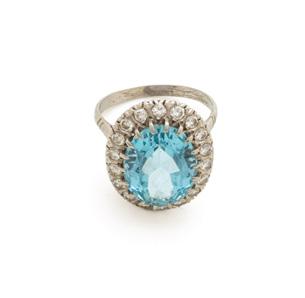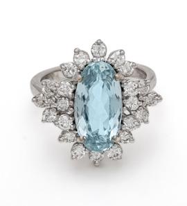 Diamond, Aquamarine & 14kt White Gold Cocktail Ring, Size: 5.75