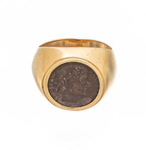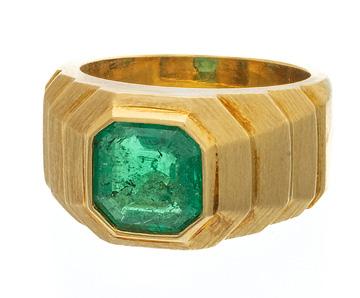 Emerald And 18kt Yellow Gold Man’s Ring, 26.5g Size: 9.5