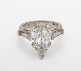6.39ct Brilliant Pear Shaped Diamond & Platinum Ring, GIA Report, VSI, Color H, 13g Size: 7.25