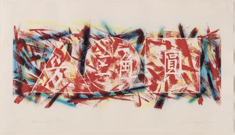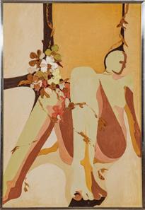 Robert Harrison Crowder (American, 1911-2010) Japanese Influence Four Panel Hand Painted Screen H 84” W 76”