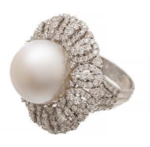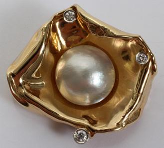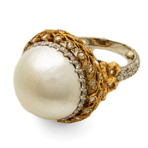 Buccellati (Milan, Italy) Mabe Pearl With Diamonds 18K Gold Ring, 10g Size: 5.5