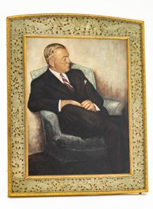 Chinese Jade Photo Frame, Oil Portrait Of Fred Fisher, From The Estate Of Fred And Bertha Fisher, Ca. 1920, H 17” W 13”