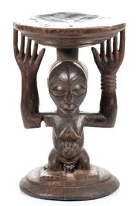 Luba Peoples, (Democratic Republic Of Congo,) Carved Wood Prestige Stool (Kipona), Early To Mid 20th C., H 13.5” Depth 9”
