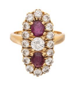 Ruby And Diamond Ring, Ca. 1950, 7g Size: 6