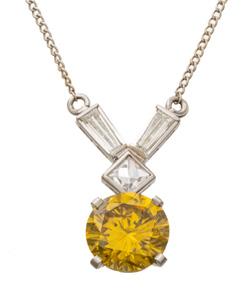 2.45ct Round Brilliant Cut Diamond & 14kt Yellow Gold Pendant, H 1.25” 6g