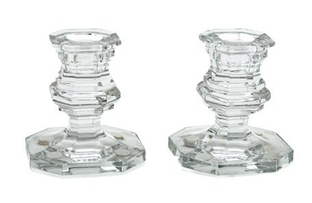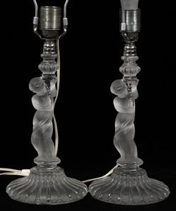 BACCARAT CRYSTAL FIGURAL LAMPS, PAIR, H 10 1/2” (19” OVERALL)