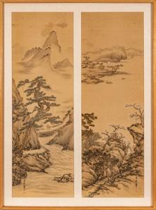 Chinese Watercolor And Ink On Silk Diptych, 20th C., H 49” W 16.5”