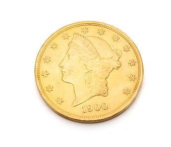 1900 S U.S. $20 Liberty Head Double Eagle Gold Coin, Dia. 1.25” 33g