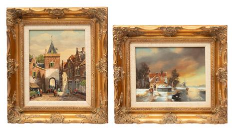 Oils On Canvas Mid 20th C., City Scene And Landscapes, 3 pcs