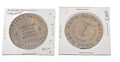 Swede’s Saloon, Chicago, & Hap’s Bath House, N.Y. Brass Tokens Ca. 19th.c., Dia. 1.5” 26g 2 pcs