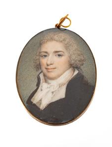 Watercolor On Paper Portrait Miniature Of A Gentleman Ca. 1800, H 3.2” W 2.5”