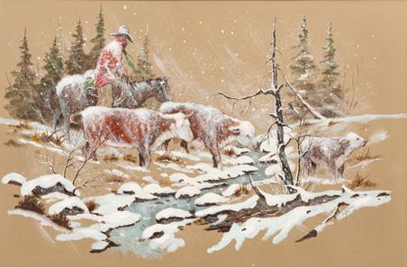 Jack Faxon (American, 1936-2020) Acrylic on Board H 24” W 50”