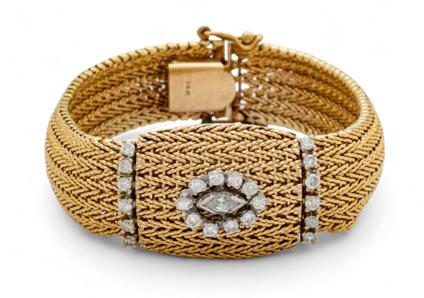 Ladies 14k Gold & Diamond Wristwatch, W 0.75”