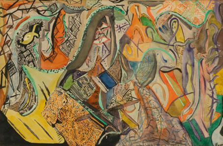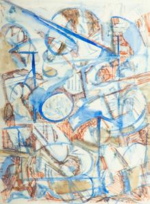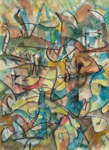 Jack Faxon , 1936-20 Mixed Media: Watercolor, Gouache “Abstract Composition”, H 28” W 21”
