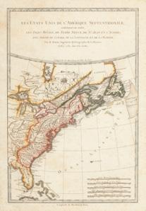 Rigobert Bonne (French, 1727-1794) Hand Colored Engraving Ca. 18th Century, Les Etats Unis De L’Amerique Septentrionale Map, H 16” W 10”